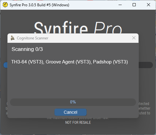 Be patient and wait 3 minutes after which the scanner will dismiss the plug-in and exclude it from being considered in future scans by adding it to the file BannedPlugins64.txt in /Library/Application Support/Cognitone/Resources (Windows: C:\ProgramData\Cognitone\Resources).