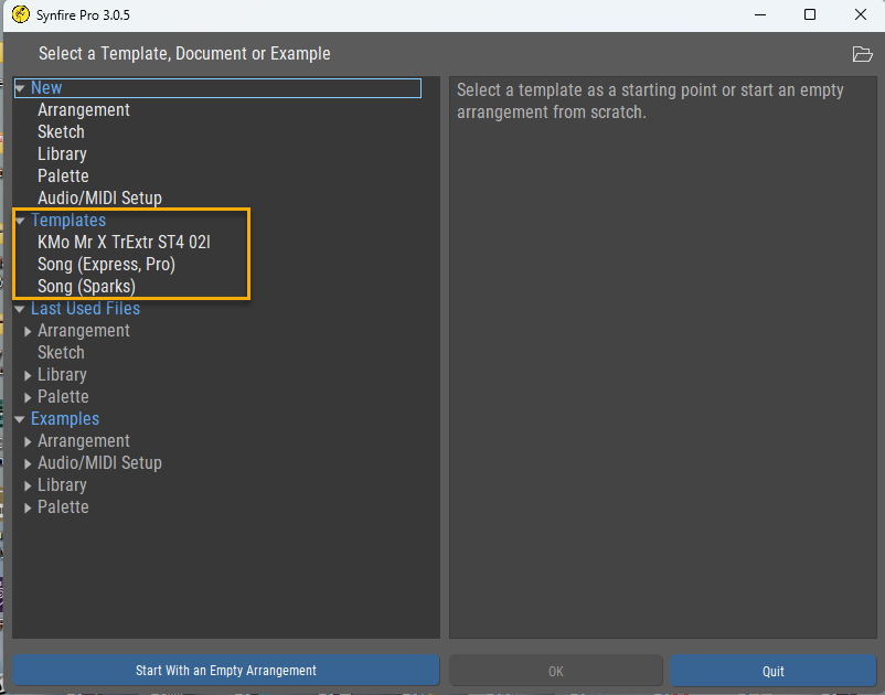 I have placed a .cognac file in the specified location, but upon opening a new Arr window I do not see any kind of choice or option to open that as a template.