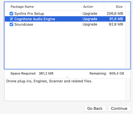 While installing Synfire Pro 3.0.6 i get an error concerning Audio Engine.