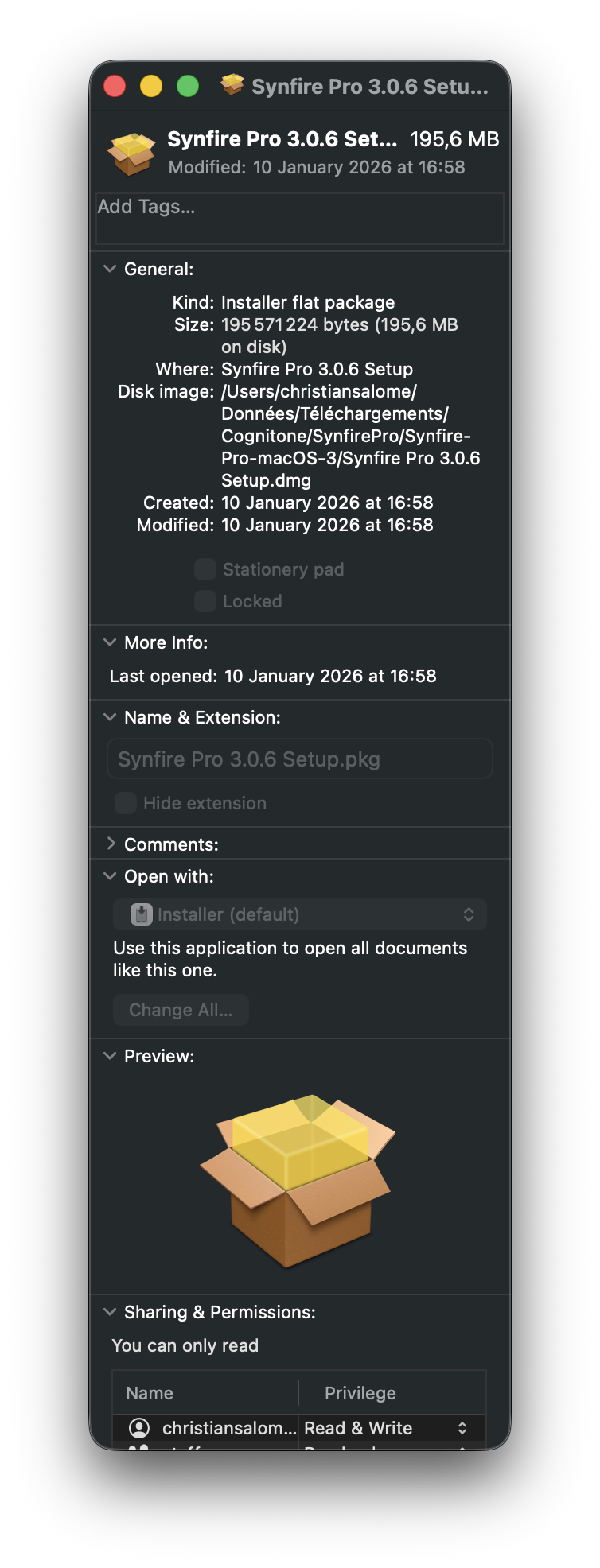 Installation works but i get the same problem when i launch Synfire.