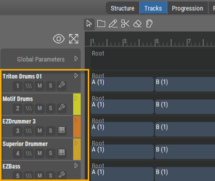 Tracks have clearly visible numbers. The number is important to distinguish instruments that use the same sound (unless you rename instruments manually - most users are too lazy to do that, including me).