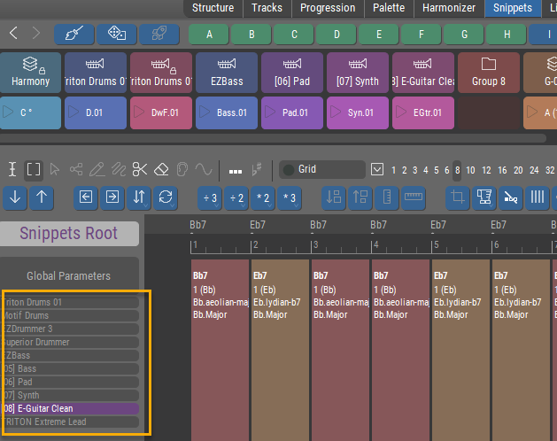 A snippet is a container that may include parameters for any number of instruments. Only if there is no doubt about the target of a dropped phrase, the dialog will be skipped.