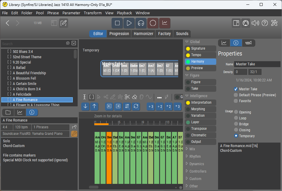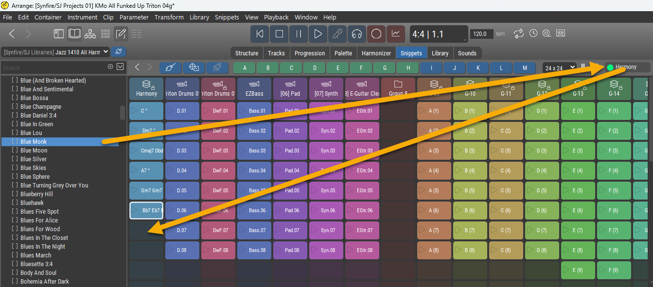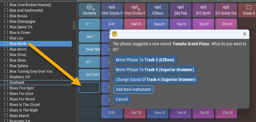 When dragging a Harmony-only library item onto the Snippets matrix (into a Harmony only column), a dialog pops up that is incomprehensible to me in terms of what I'm trying to do, which is simply to place the Harmony from the Library into the Snippet.