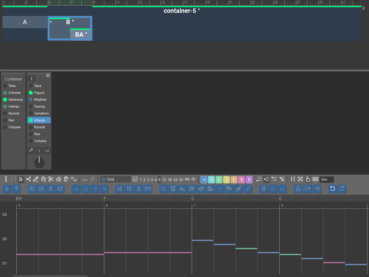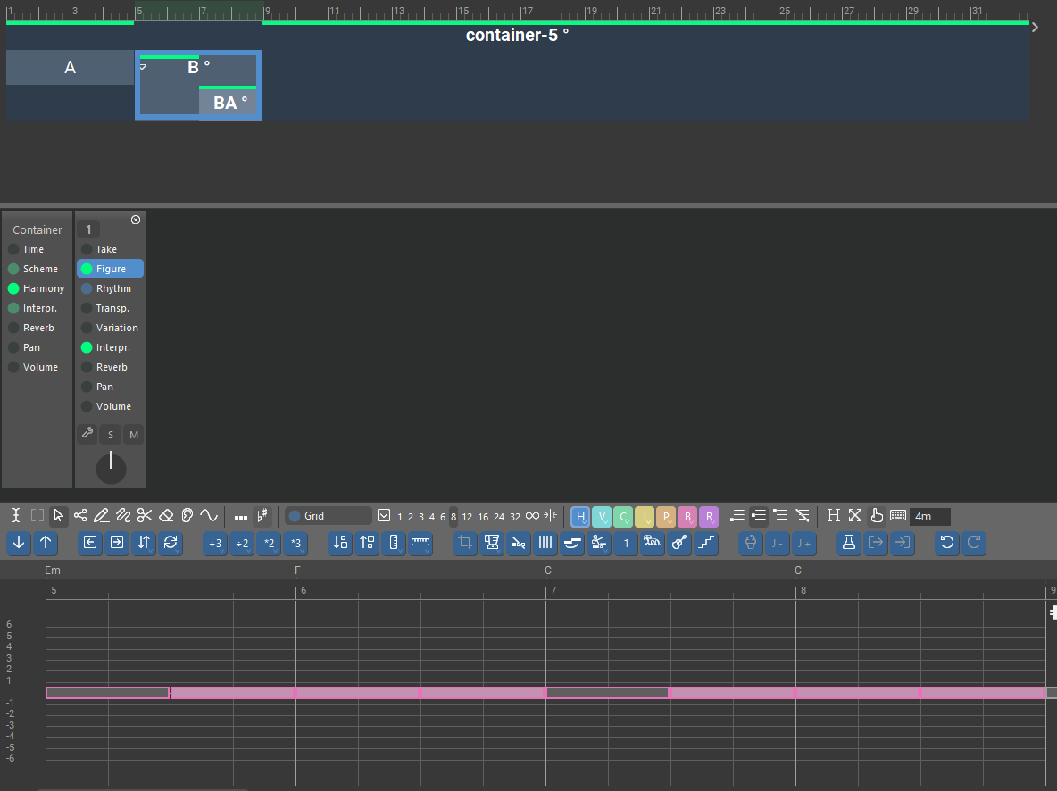 HI Blacksun, the double sound have turn up so fare with Soundcase Fluid3 Pick bass, I tested with Kontakt Nativ instrument bass and it works well no double sound. I have tested with Soundcase Fluid3 Pick bass more than one time and it still happening. If I delete the event in Container B which corresponds to Ba the double sound disappear.