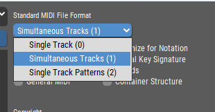 As of Synfire Pro 3.0 5, these are the options offered for SMF Export: